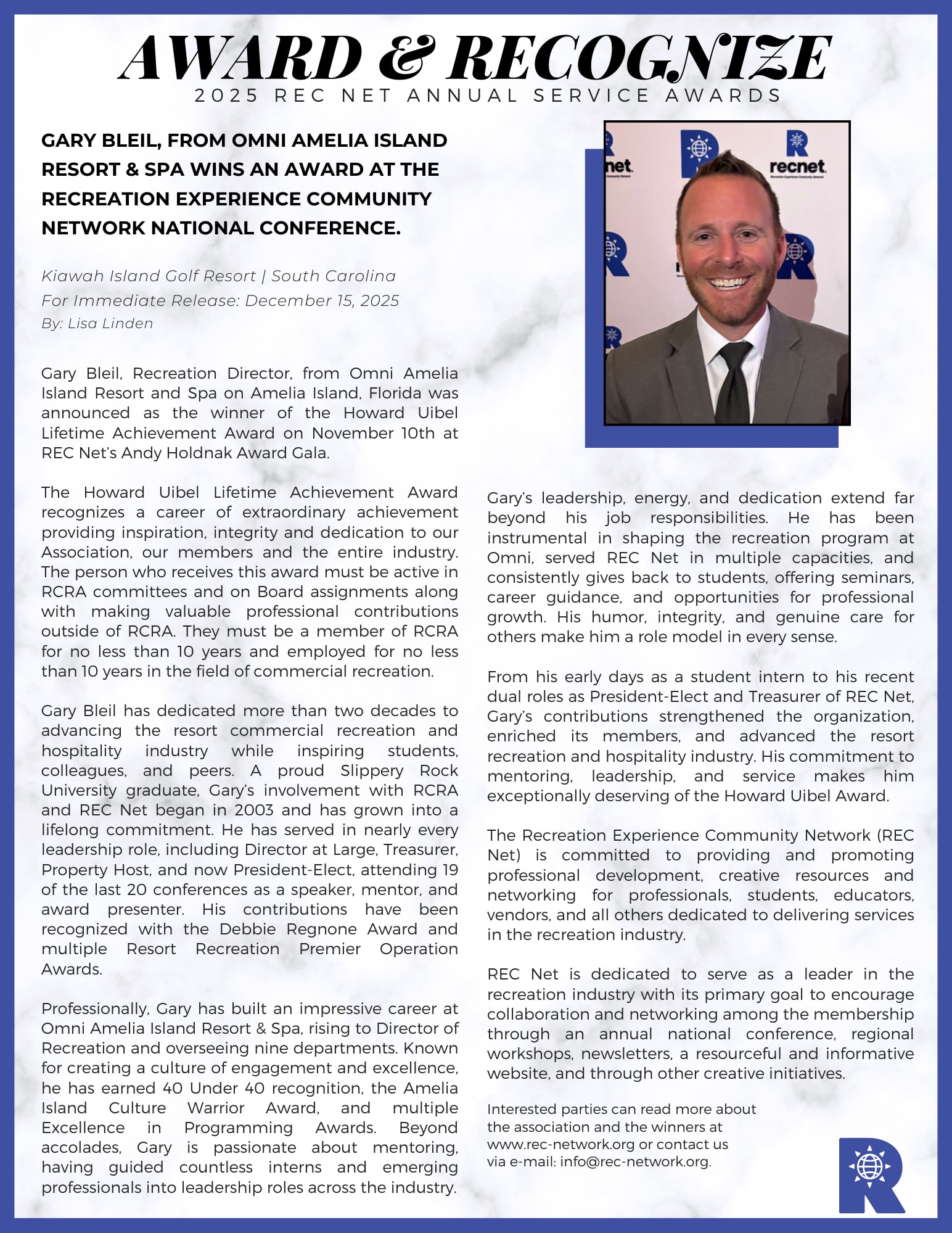 Press Release: Howard Uibel Lifetime Achievement Award Back to News Press Release: Howard Uibel Lifetime Achievement Award By Annie Pilek 1/9/2026 Images × Share × Email Facebook LinkedIn X Pinterest Powered By GrowthZone